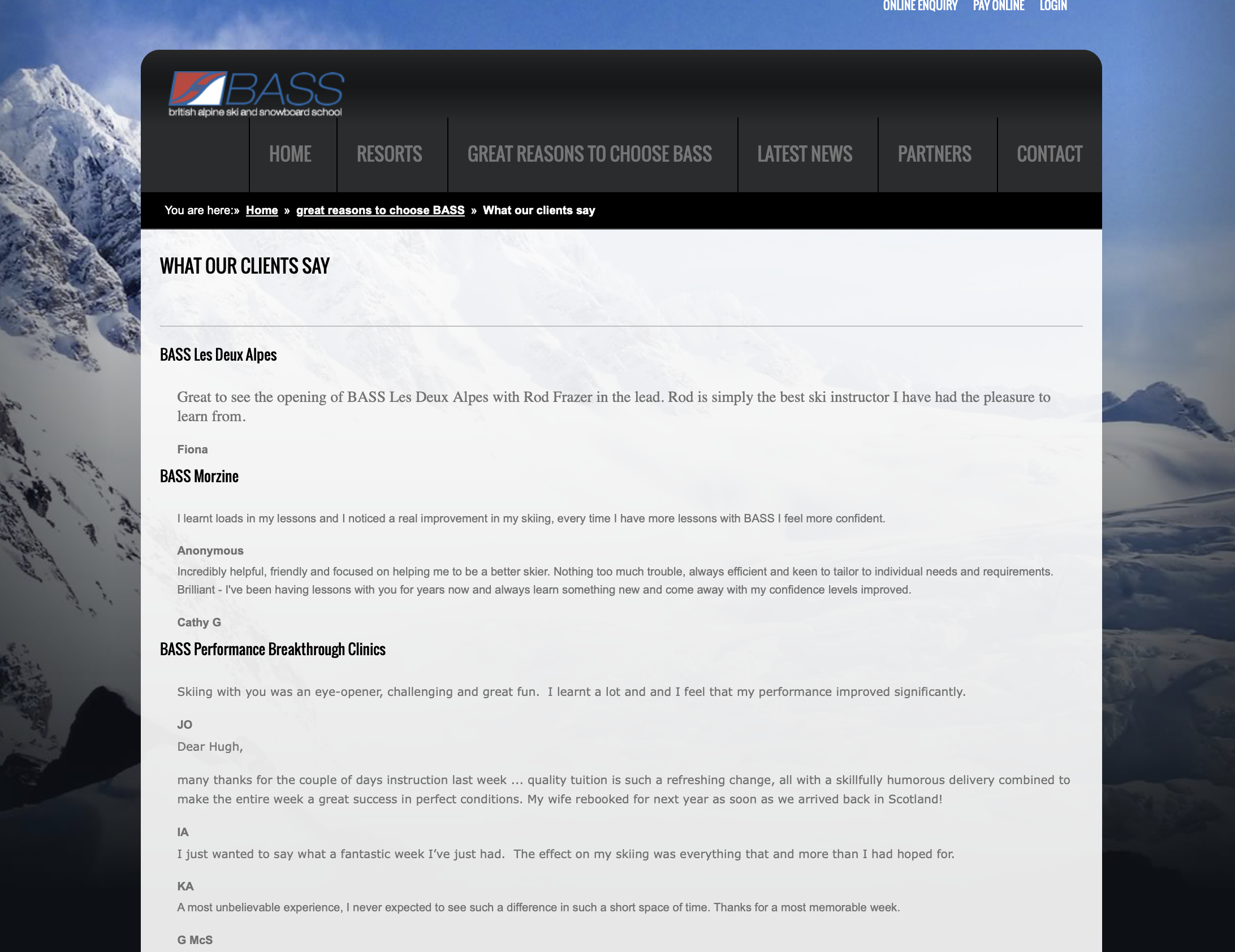 A long list of great feedback from wonderful clients - verifiable as entries on the BASS website in 2016, on our BASS website archive.