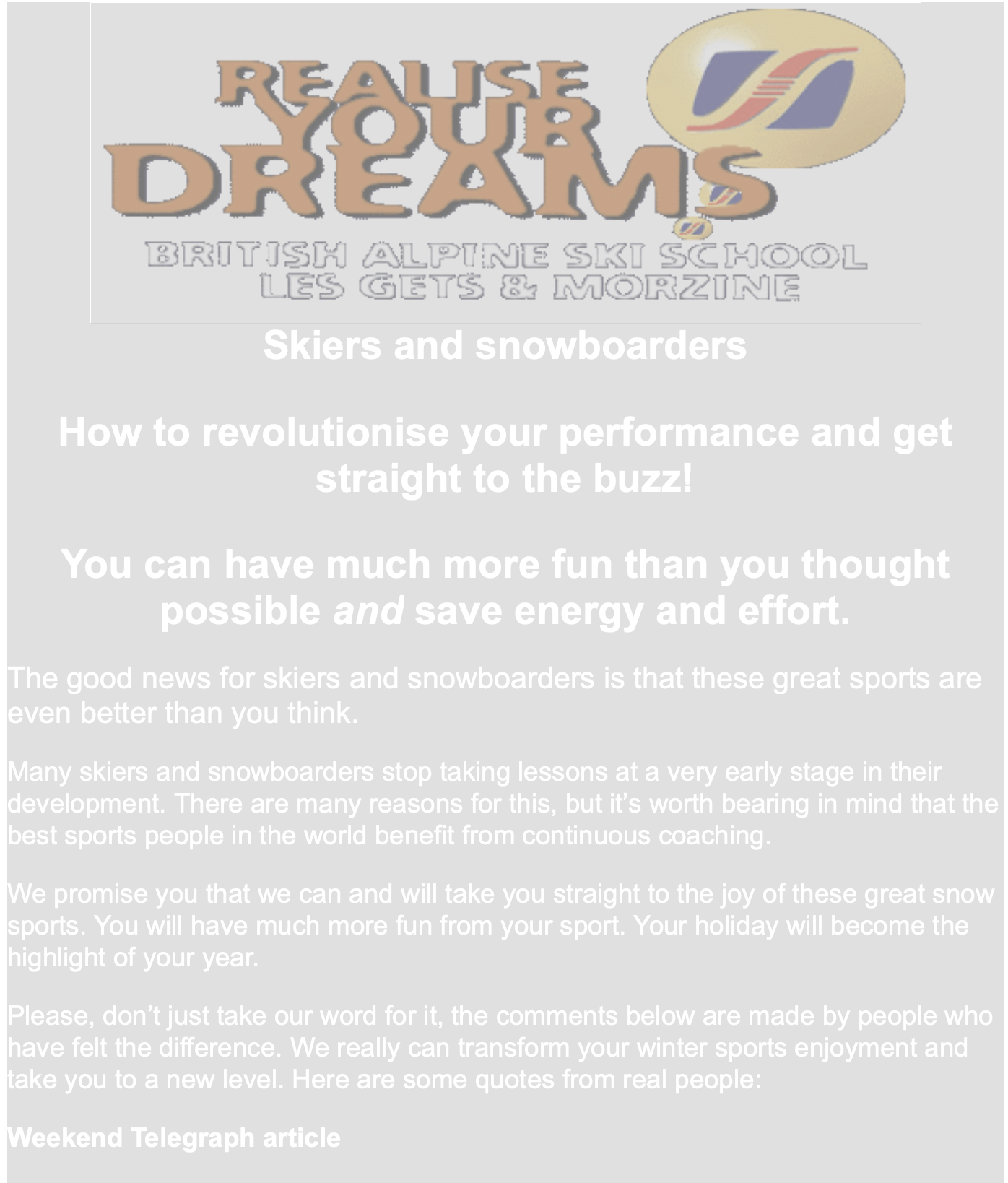 Skiing with you was an eye-opener, challenging and great fun. I learnt a lot and and I feel that my performance improved significantly.