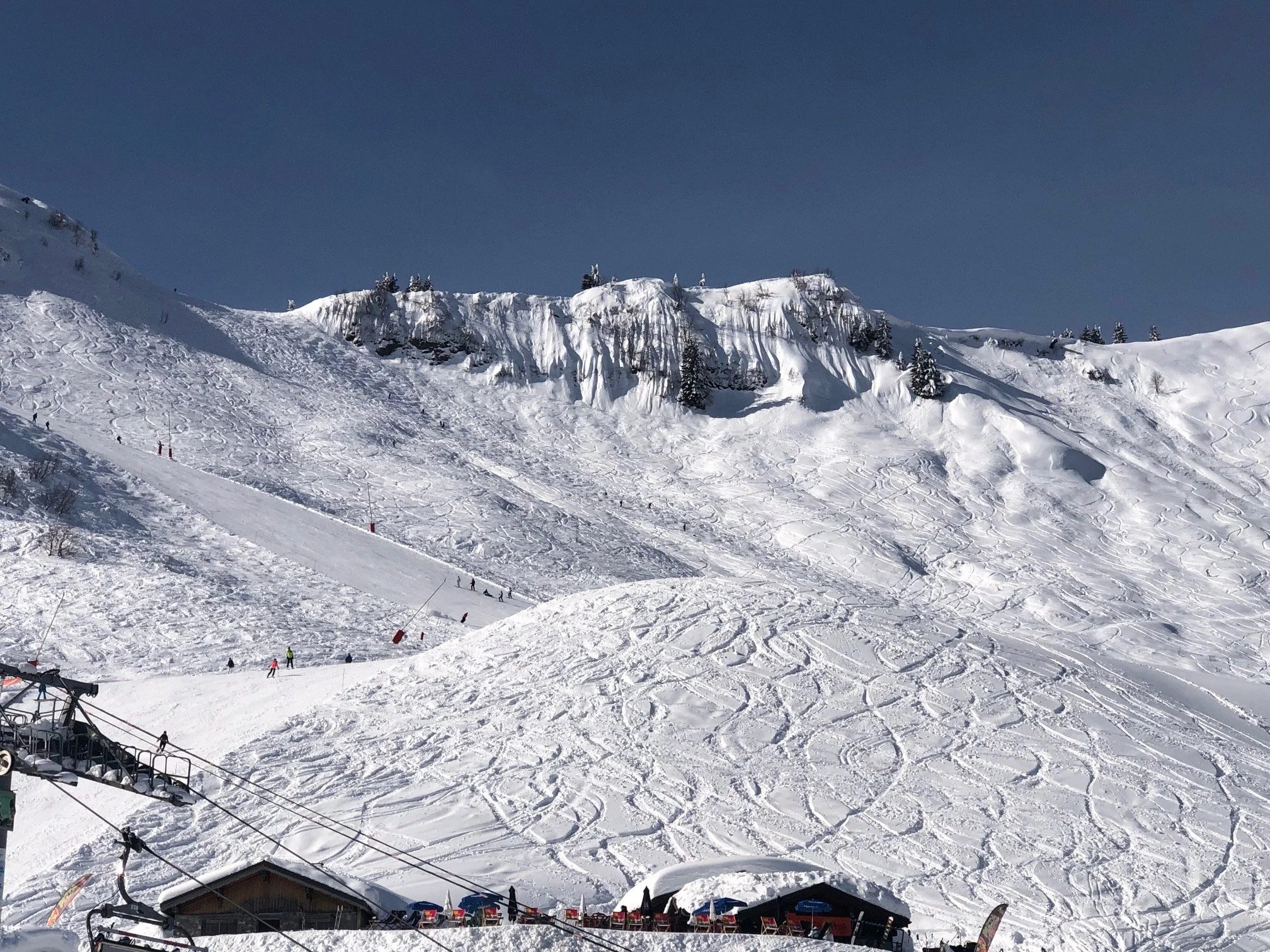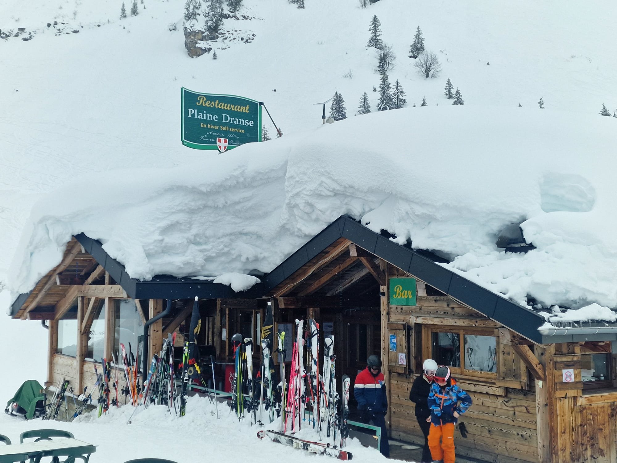 During the first week of February there was a rockfall above the road to Pres La Joux, whilst no rocks actually reached the road, the authorities decided the ground above the road may be unstable. As a result the road has been closed to public vehicles and an upgraded free bus service has been implemented. The first few days of this bus service had some teething problems but now it has become a very efficient system. The free buses leave from the centre of Chatel village and from Linga. Our meeting place has not changed .