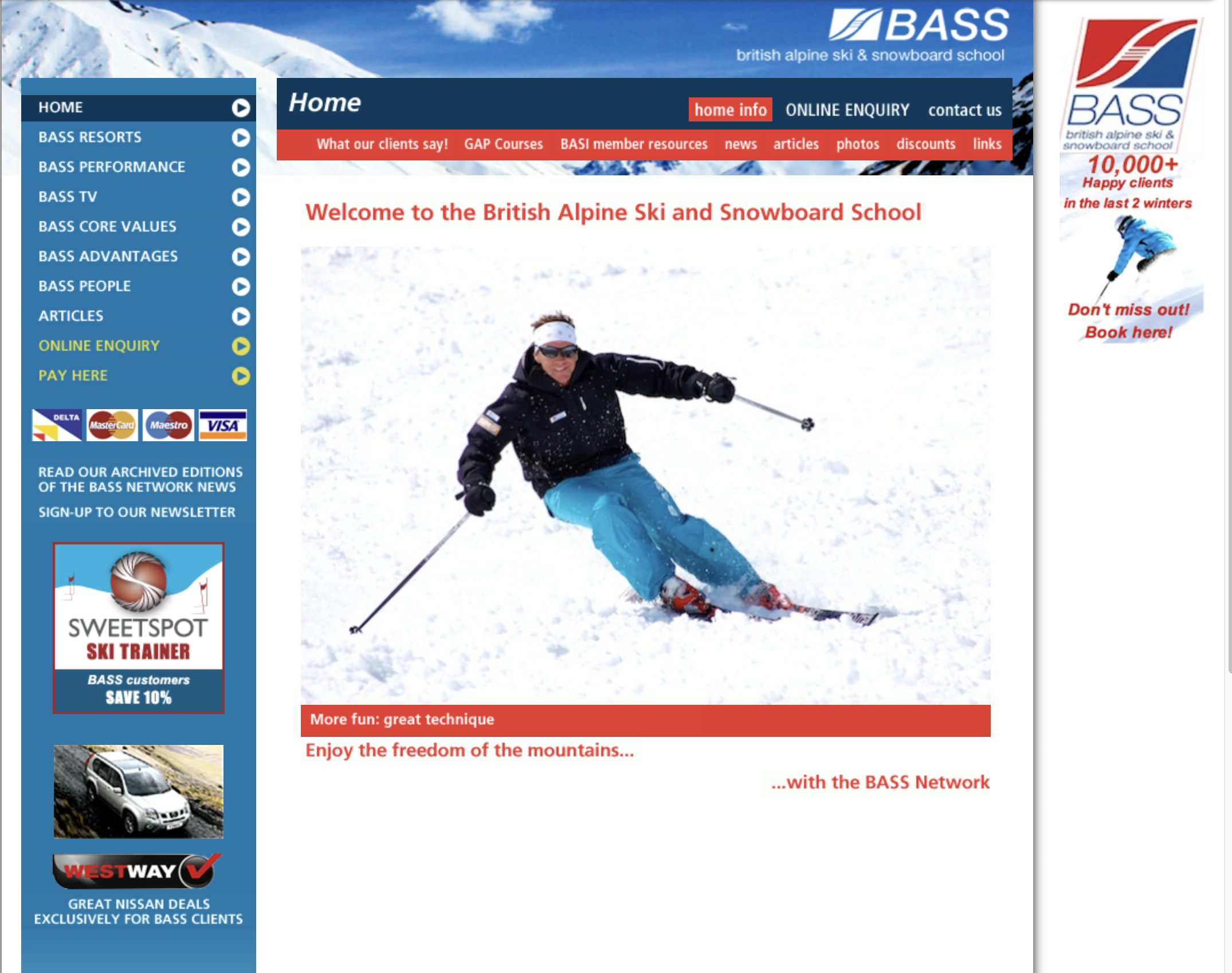 This is the Datatherapy version of the BASS website in full flow. Yousaf at Datatherapy was very important to the development of the technology that allowed us to run successful BASS ski schools.