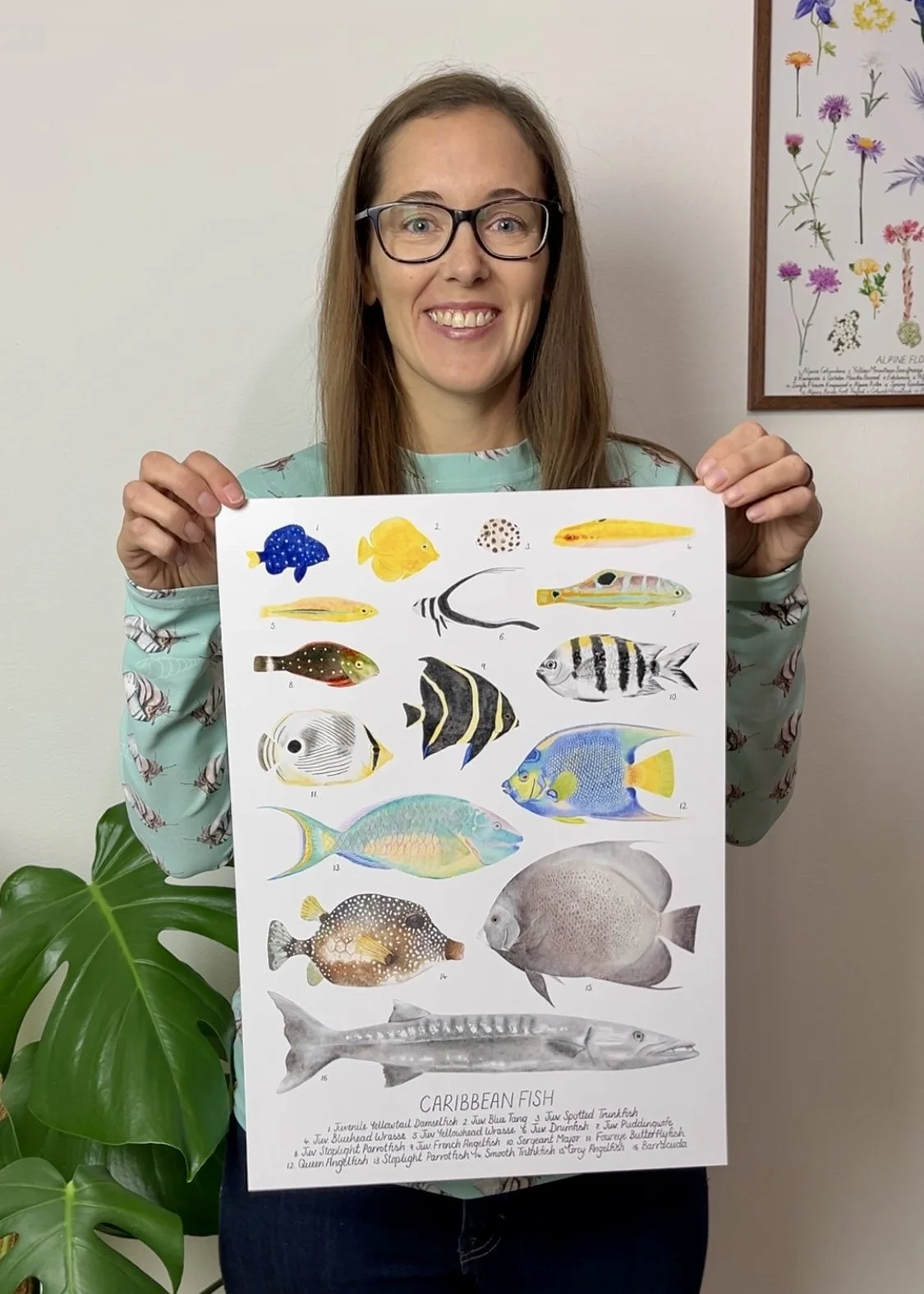 The ocean designs are inspired by scuba diving trips, with a particular emphasis on Caribbean sea life as she completed her scuba instructor qualifications in Honduras.